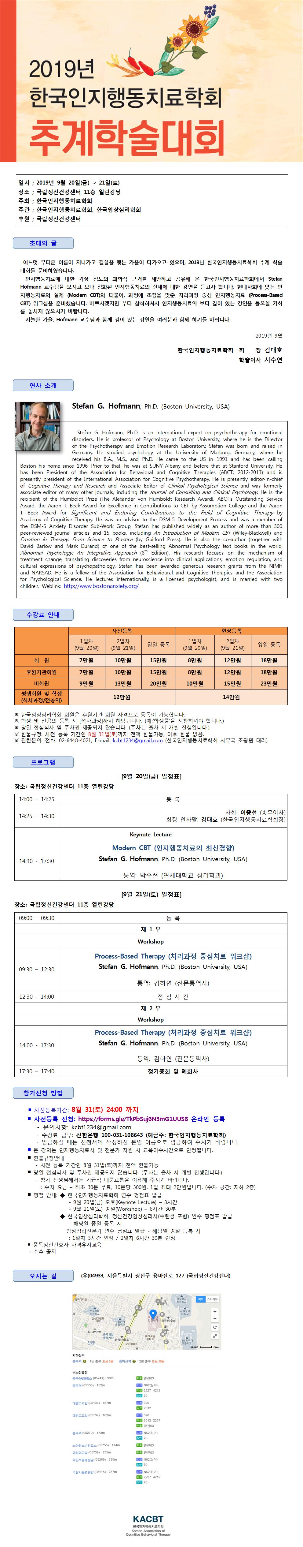 첨부파일2. [한국인지행동치료학회] 2019년 추계학술대회 안내문(웹용 홍보물) (한글파일)