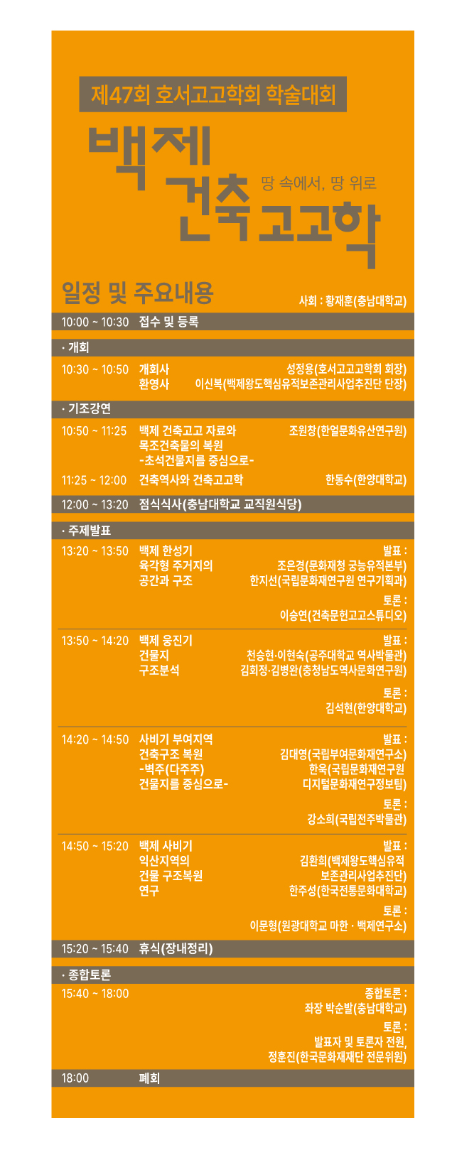 ▣ 후 원 : 가경고고학연구소, 고운문화재연구원, 금강문화유산연구원, 누리고고학연구소, 대한문화재연구원, 마한문화연구원, 미래문화재연구원, 백제문화재연구원, 비전문화유산연구원, 서원문화재연구원, 중앙문화재연구원, 중원문화재연구원, 충청남도역사문화연구원, 충청북도문화재연구원, 한강문화재연구원, 한국고고환경연구소, 한국선사문화연구원, 한얼문화유산연구원, 호서문화유산연구원