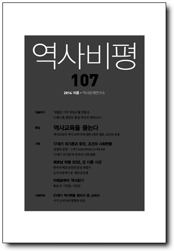 특집 '역사교육을 묻는다'는 작년부터 이어진 한국사 교과서 논쟁을 돌이켜보며, 보다 근본적으로 또 지속적으로 이 문제를 다룰 필요가 있다는 문제의식에서 기획되었다. 기획 '17세기 위기론과 중국, 조선의 사회변동'에서는 소빙기 혹은 자연재해의 영향을 지나치게 부풀리지 않으면서도 그것이 당대 사회 변화에 끼친 영향을 정확하게 살펴본다.