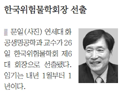 2018년 제6대 한국위험물학회 회장으로 연세대 문일 교수 선출