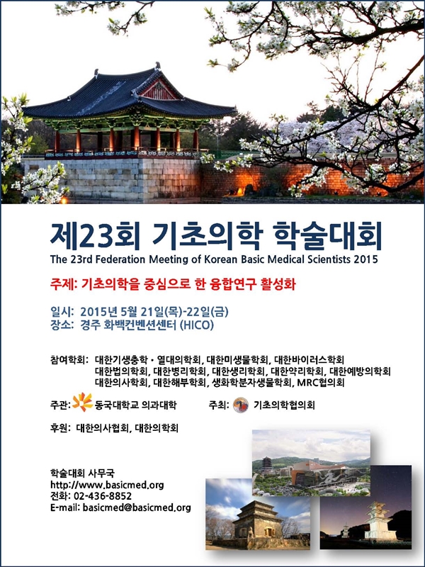 우리 춘계학술대회가 2015년 기초의학 학술대회 일환으로 개최됩니다.