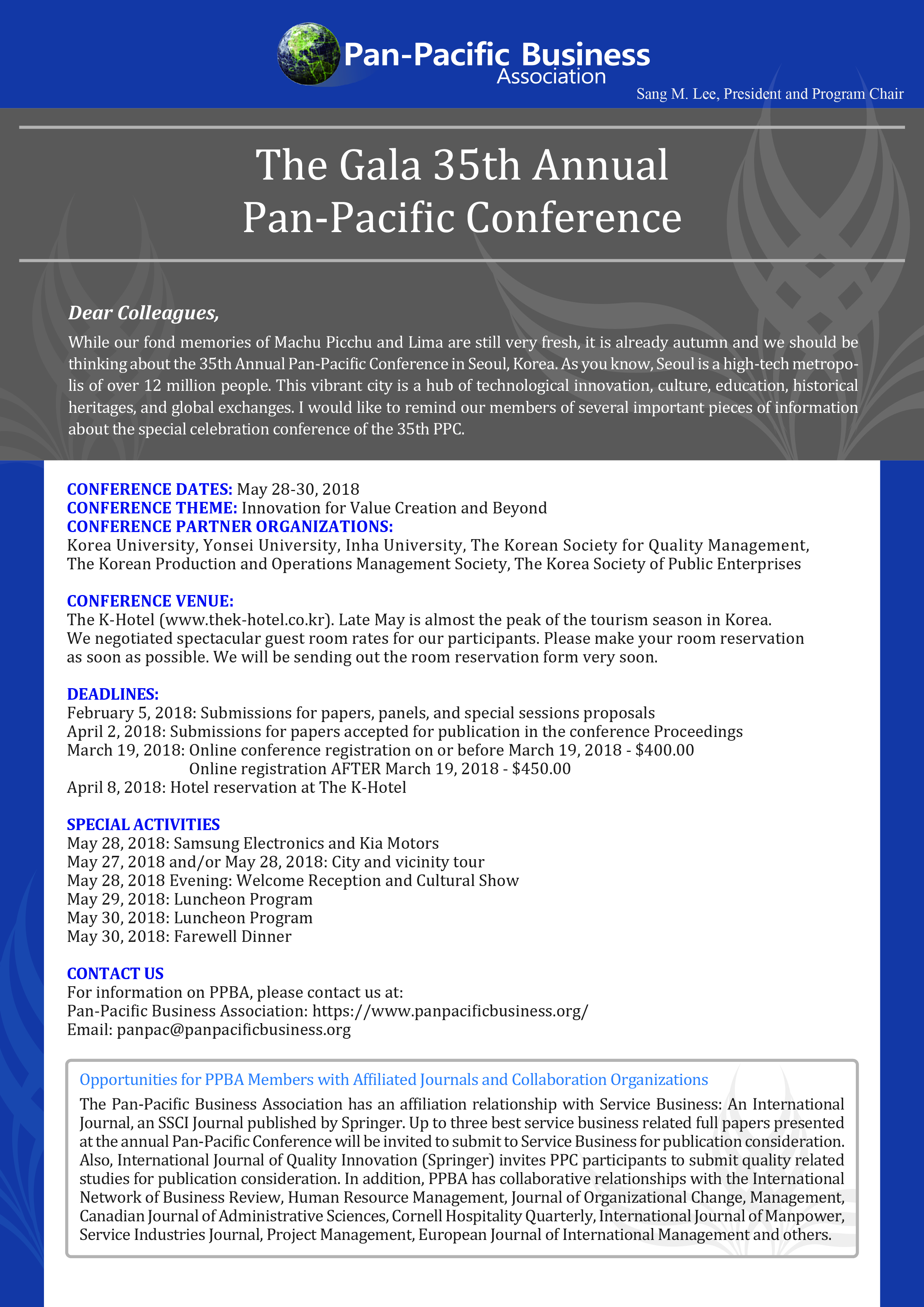 『The Gala 35th Annual Pan-Pacific Conference』을 다음과 같이 알려드리오니 많은 관심 부탁드립니다.