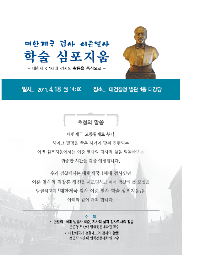 대한제국 검사 이준 열사 학술심포지움을 개최합니다.