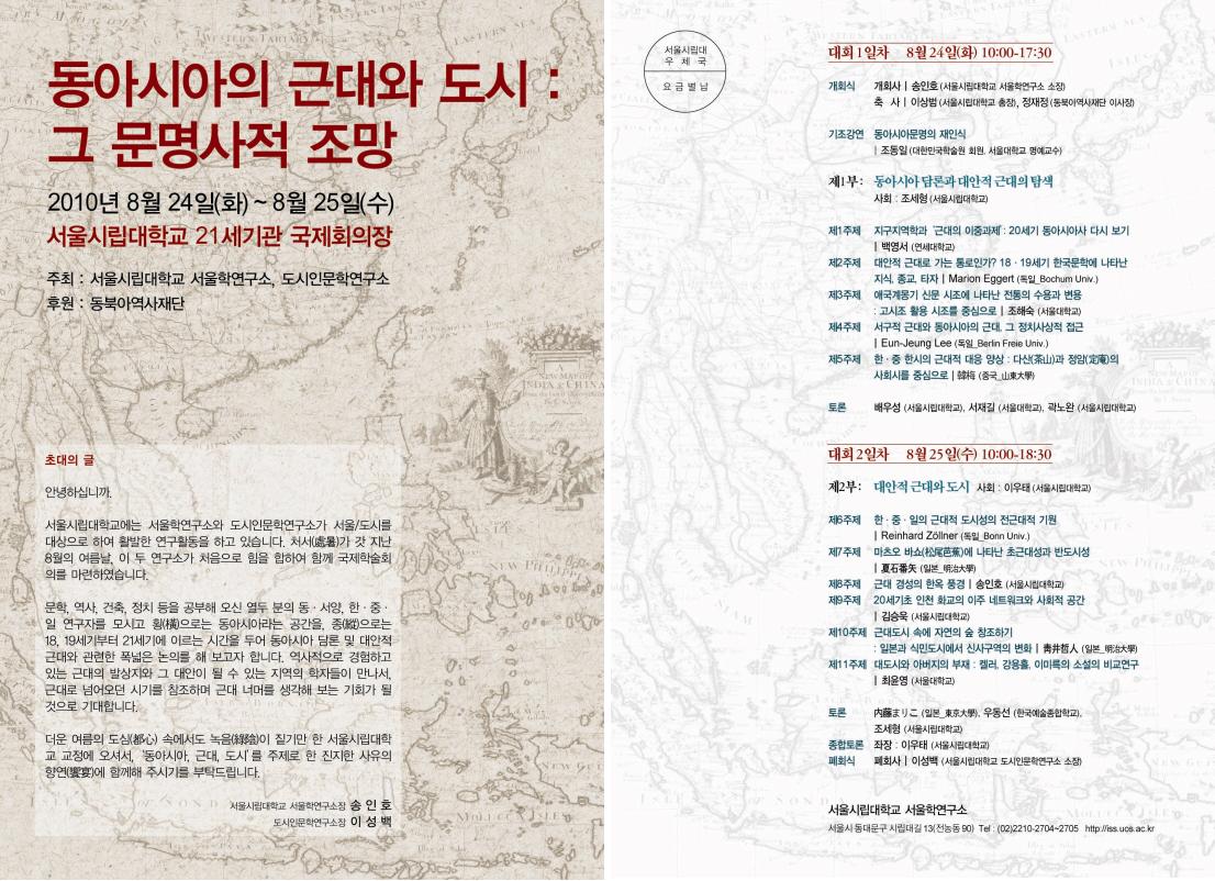 심포지엄 주제 : 동아시아의 근대와 도시 : 그 문명사적 조망