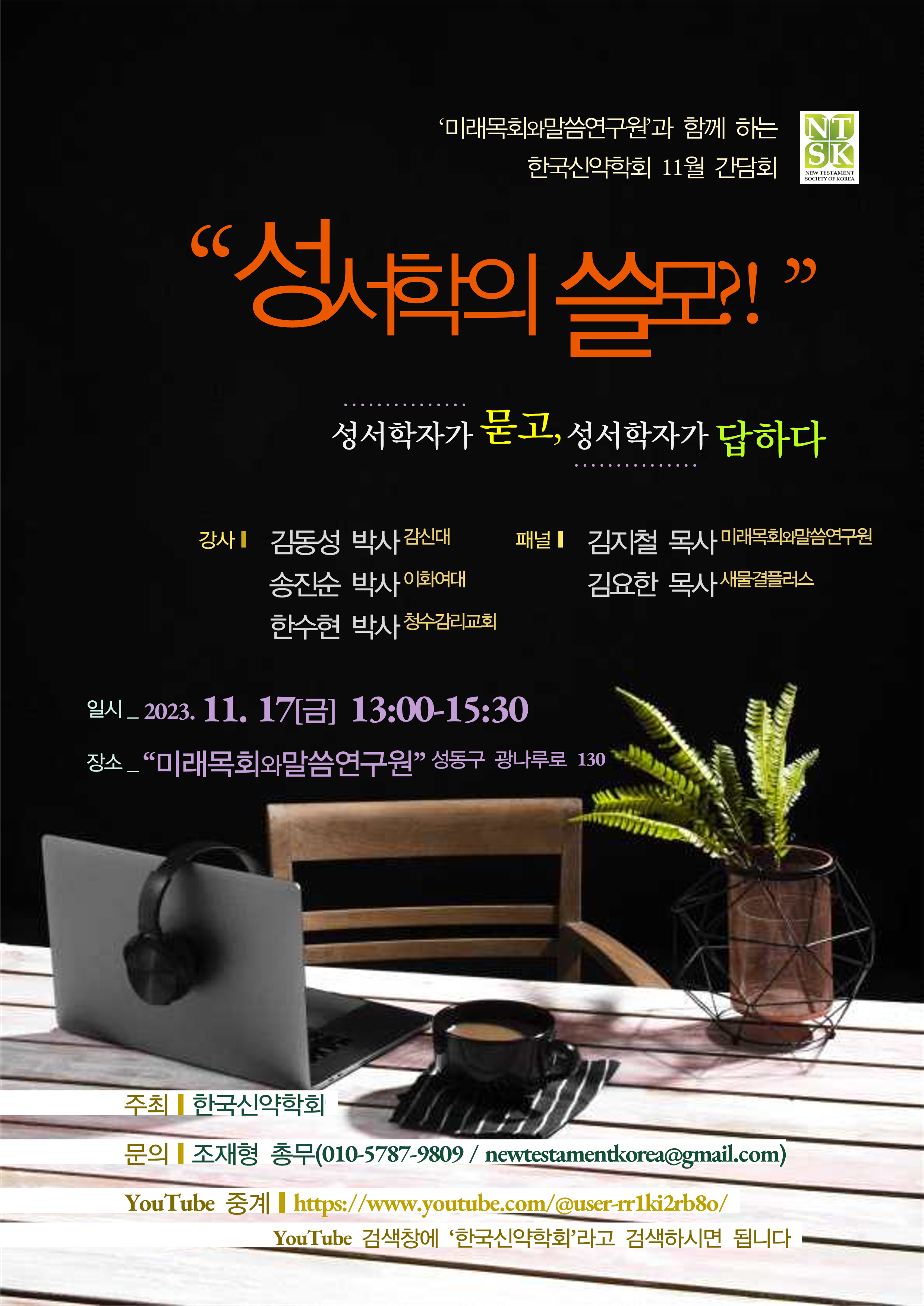 주제: '성서학의 쓸모?!'-신약학자가 묻고, 신약학자가 답하다